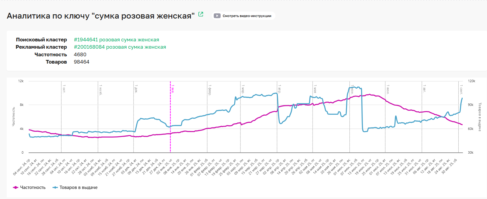 Аналитика по ключевому запросу позволяет понять, как часто пользователи ищут определенный товар, а также оценить конкуренцию. На основе данных можно определить популярность товара, прогнозировать спрос на него и планировать маркетинговые действия.