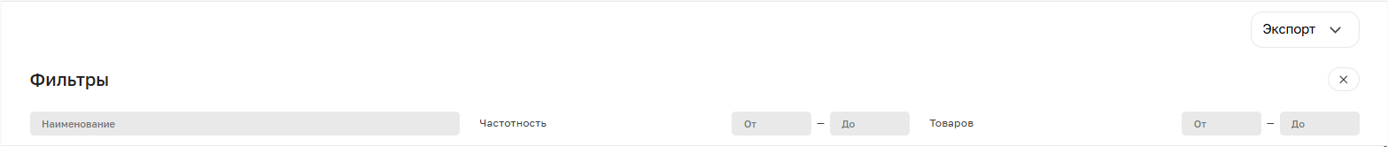С помощью фильтров можете отфильтровать ключи по заданной частотности и количеству товаров. Для поиска конкретного ключа воспользуйтесь поисковой строкой.