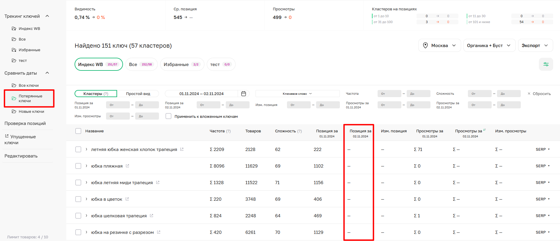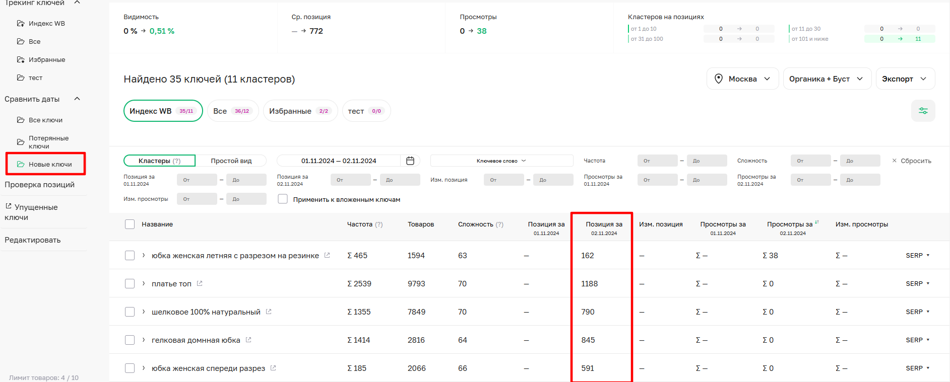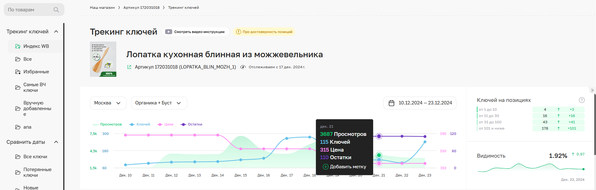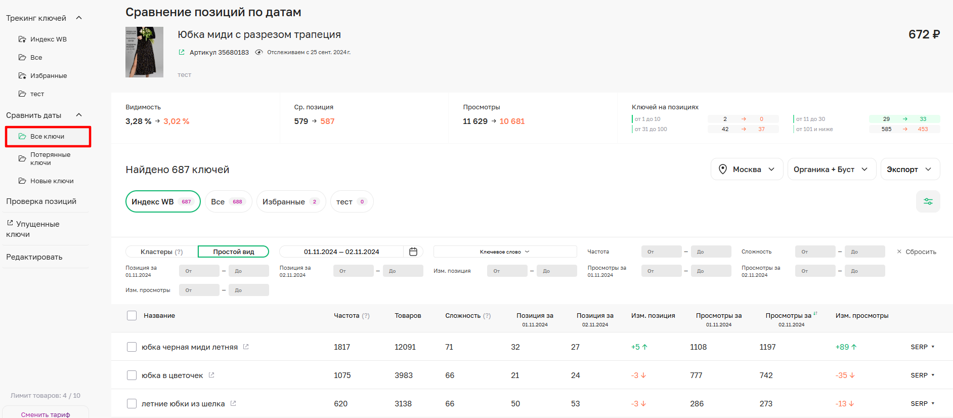 Таким образом, инструмент сравнения показателей по датам является важной частью стратегического анализа, помогая принимать обоснованные решения и повышая общую эффективность продвижения товара.