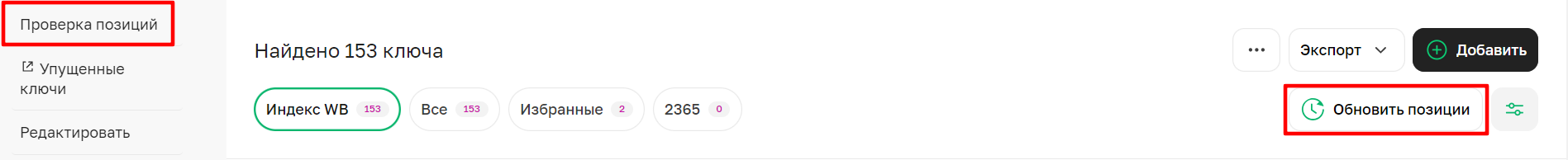 Если вы хотите проверить позиции на данный момент, воспользуйтесь ссылкой «Проверка позиций» или нажмите “Обновить позиции", тогда данные в Трекинге обновятся.