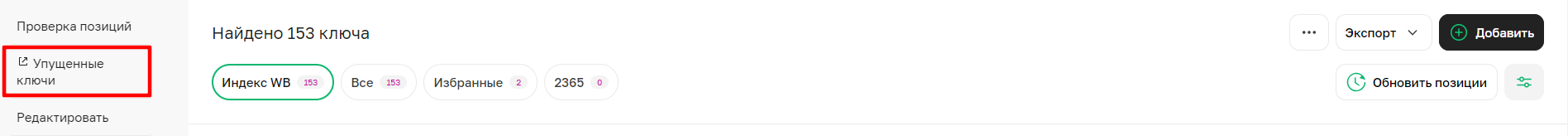 Для сопоставления карточки товара с аналогичными предложениями конкурентов кликните на инструмент "Упущенные ключи".