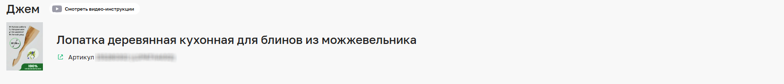 На странице Джем в верхней части отображаются ID кампании и фото артикула.