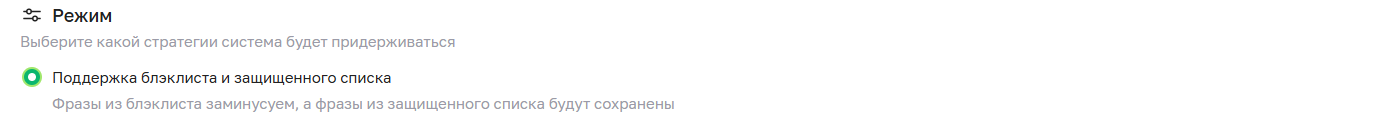 Если при данном режиме вы не хотите использовать список Защищенных фраз и Блэклист, их можно оставить пустыми.